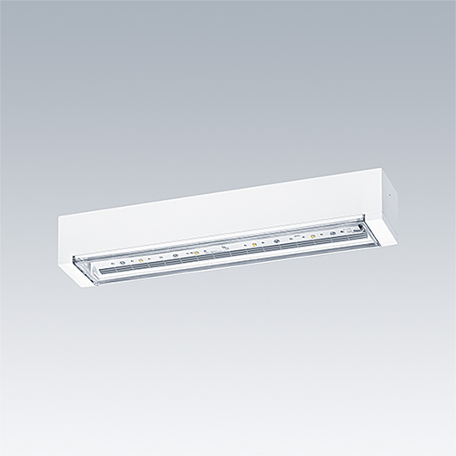Slim IP65 LED emergency lighting luminaire for surface, wall or ceiling mounting; Click adapter for wall surface mounting within scope of delivery; recessed ceiling mounting possible with optional recessed ceiling frame; Luminaire for central emergency power supply with 48V DC, for single monitoring of the luminaire via Powerline in connection with the nBox System, settable emergency light level; non-maintained and maintained mode possible; ; Cable length from emergency power source to last luminaire: 200 m; additional click-optics optimised for escape routes and open areas from higher mounting heights available; Click in legends for viewing from a maximum distance of 23 m and 30 m available to convert to escape sign luminaire; housing made of polycarbonate white; cover mode of transparent polycarbonate; Tool-less 'click' mounting after fitting the housing base; Quick fit terminal block, through wiring possible up to 2,5 mm²; zero maintenance thanks to LED technology; service life of 50,000 h at constant luminous flux; Luminaire input power: 2.4 W; degree of protection: IP65, class of protection: SC2; Impact strength: IK03; Dimensions: 336 x 54 x 59 mm; weight: 0.56 kg
