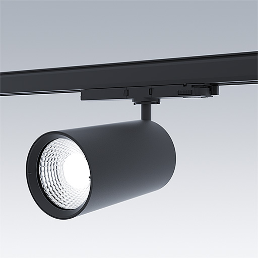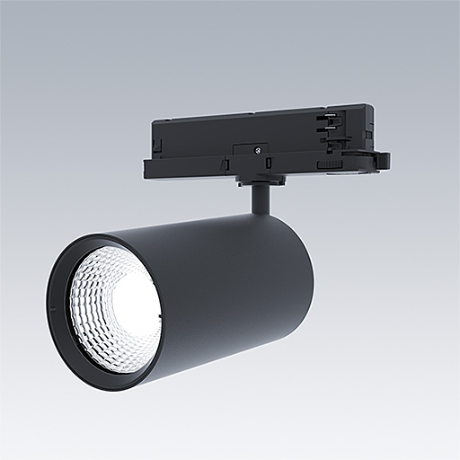 Spotlight LED para el sistema de carriles trifásicos con distribución de foco y temperatura de color estabilizada. driver de salida fija. , IP20. Carcasa: fundición aluminio laca microestructurada negro. Reflector: PC metalizado por pulverización. Spotlight giratorio 360° y orientable 90°. Con LED 4000K