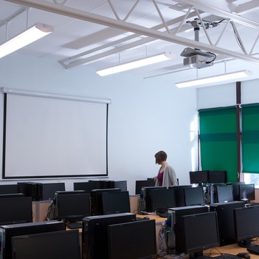 En todas las aulas se cambiaron nueve tubos 1x65 W T12 con funcionamiento mediante interruptor con la última luminaria College LED de Thorn. La luminaria College LED se ha diseñado específicamente para entornos de educación y tiene una óptica de luminaria que mejora la iluminancia vertical y cilíndrica dentro del espacio para ayudar con la comunicación. La excelente iluminancia cilíndrica de College LED significa que tanto los profesores como los alumnos pueden ver ahora con claridad y comprender las expresiones faciales. Las aulas también parecen ahora mucho más brillantes con unos niveles de luz que pasaron de 200-250 lux a más de 400 lux, haciendo del espacio un lugar agradable para aprender.