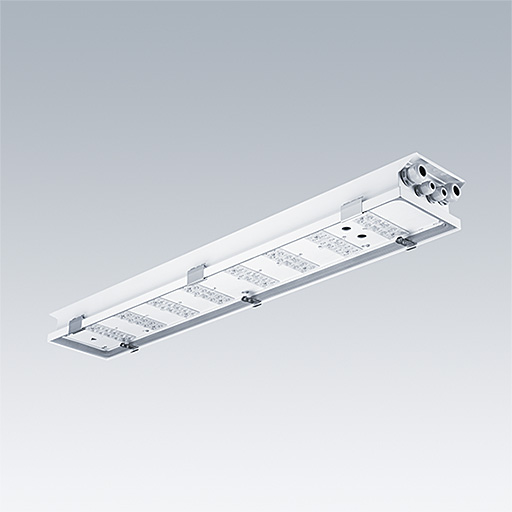 Un luminaire pour tunnel en Acier inox doté de la technologie LED avancée, alimentant 108 LED en 450mA - le driver est équipé d’un fusible. Corps : Acier inox, qualité 1.4404 / 316L, thermopoudré blanc. Fermeture : verre plat trempé, 5 mm. Installation en plafonnier avec supports en accessoires. Distribution lumineuse : Distribution axiale confort pour rue. Possibilité de passage en coupure pour l'alimentation secteur avec un câble 5 x 10 mm² via 2 presse-étoupes M32 (câble Ø 9-21 mm). Contrôle du signal avec un câble Dali via 2 presse-étoupes M20 (Ø 3-13 mm). Classe électrique I, IP65, IK08. Livré avec LED 4 000 K