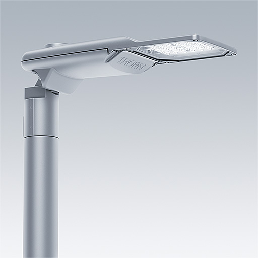 Lanterne d’éclairage routier LED moderne (Small) avec 36 LED alimentées en 500mA avec une optique Route étroite. Programmable Driver. Classe électrique II, IP66, IK09. Corps : aluminium (EN AC-44300) Moulage sous pression, thermopoudré gris clair 150 sablé texturé. Emmanchement : aluminium (EN AC-44300), Moulage sous pression sans peinture. Fermeture : verre ép. 5 mm. Visserie : Acier à ressorts. Livré avec un adaptateur d’emmanchement Ø 60 mm qui convient pour montage top (inclinaison 0°/5°/10°/15°/20°) ou latéral (inclinaison -15°/-10°/-5°/0°/5°/10°/15°). Equipé d'un 50% circuit de réduction de puissance, qui entre en vigueur 3 heures avant et 5 heures après un minuit calculé. Livré avec LED 4 000 K. Protection contre les surtensions : 10 kV en mode commun single pulse et 8 kV en mode commun multipulse; 6 kV en mode différentiel multipulse. Si un système DALI est connecté: 6 kV en mode mode commun et mode différentiel multipulse.