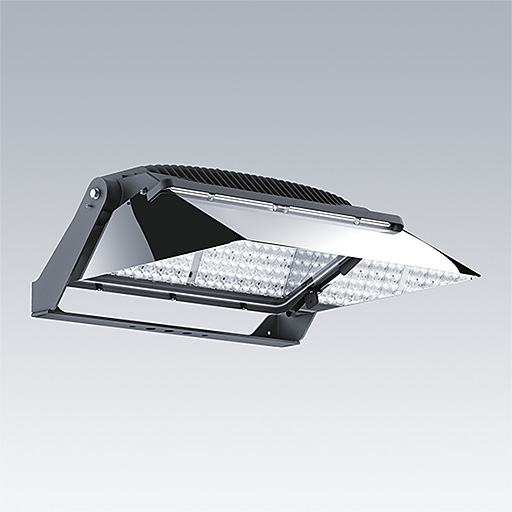 Projecteur LED de haute performance avec une distribution lumineuse 55° asymétrique par 264 LED. Appareillage externe, Fourni uniquement par Thorn Lighting à commander séparément. Classe électrique I, IP66, Résistance aux impacts : IK08. Corps : aluminium Moulage sous pression, thermopoudré texturé gris anthracite 900 sablé. Boîtier : 4 mm d’épaisseur, trempé plat verre. Visière : Spéculaire (réflectif). Luminaire fixé par un seul boulon à travers un trou central de Ø 22 mm, ou deux boulons à travers des trous de Ø 15 mm à 200 mm d’intervalle. Réglage par un simple dispositif de réglage (à commander séparément). Idéal pour les terrains de sport et les stades ou l’éclairage de grands espaces. Fonctionnement à faible papillottement (< 1 %) adapté à la télédiffusion haute définition. Livré avec LED 4 000 K avec Indice min. de rendu des couleurs: 70.