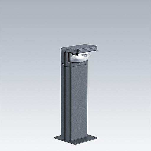 Borne LED sur semelle de 700 mm de haut, incorporant la technologie Flat beam® de Thorn. 1 LED alimentée en 350mA. gradable DALI Driver inclus. Classe électrique II, IP66, IK10. Corps : Moulage sous pression aluminium (EN44300, compatible avec l'installation en bord de mer), thermopoudré, texturé gris anthracite 900 sablé. Vasque : traitement anti-UV Polycarbonate (PC), semi-dépoli. Fixations : Acier inox. Livré avec LED 3 000 K.