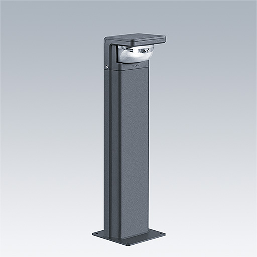 Borne LED sur semelle de 900 mm de haut, incorporant la technologie Flat beam® de Thorn. 1 LED alimentée en 200 mA. intégré Driver inclus. Classe électrique I, IP66, IK10. Corps : Moulage sous pression aluminium (EN44300, compatible avec l'installation en bord de mer), thermopoudré, texturé gris anthracite 900 sablé. Vasque : traitement anti-UV Polycarbonate (PC), semi-dépoli. Fixations : Acier inox. Livré avec LED 3 000 K.