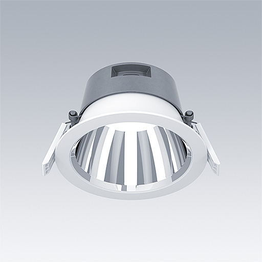 Un downlight LED durable et de haute efficacité avec faible hauteur. Convient pour installation dans les plafonds d’une épaisseur de 1 à 40 mm et une découpe de Ø150 mm avec des attaches à ressort. Driver LED enfichable, à distance, Flux fixe avec fonctionnalité CC, réglable 50 – 100 %, configurable NFC. Câblage à piquage/repiquage possible. Corps : aluminium Moulage sous pression pour une gestion thermique de haute efficacité avec un contenu de recyclage > 90 %. Diffuseur : Polycarbonate (PC). Réflecteur et garniture : Polycarbonate (PC) réflecteur lisse avec une finition brillante pour un meilleure contrôle des éblouissements dans les applications de bureau. Classe électrique II, IP20. Livré avec LED 4 000 K