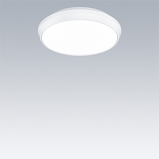 Luminaire circulaire décoratif avec corps Small. Composant indirect bas pour éclairage du mur et du plafond. Électronique, gradable DALI. Garniture esthétique du luminaire en Polycarbonate (PC) blanc. Diffuseur : opale Polycarbonate (PC). Classe électrique II, IP54. Livré avec LED 3 000 K.