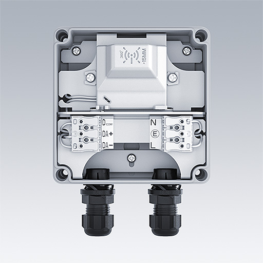 Interface rétrofit – Les luminaires non compatibles Zhaga ne sont plus exclus des avantages du système UrbaSens MOVE. Une simple connexion à un convertisseur compatible DALI suffit pour que ces luminaires autrefois autonomes deviennent aussi intelligents et contrôlables que des luminaires spécialement conçus à cet effet.